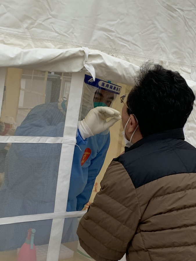 “我加入團隊的時候,小區(qū)正好出現(xiàn)了陽性感染者,這個時期是最困難的。我就想,既然選擇了做這個事,就要義無反顧?!睆埿∮抡f,“那會兒都是前一天晚上才通知第二天核酸要怎么采集,我們就當晚商量第二天在哪兒采集核酸。因為當初還沒有搭帳篷,為了快速采集,有時還要增加一組核酸采樣人員,我們還要考慮在哪選址。其實剛開始,真的是特別困難。”