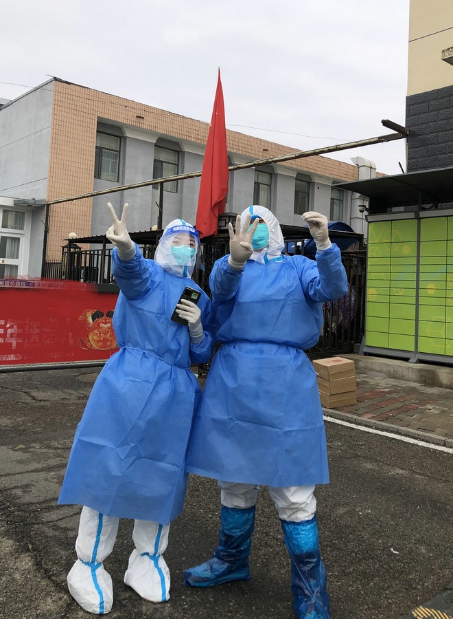 “我們倆都是機關(guān)下沉到社區(qū)的黨員志愿者。剛開始,大家都是自發(fā)的,我們每個人都是這樣,默默奉獻,因為,我既是黨員,也是社區(qū)的居民,這是我應該做的?!毖惥暾f。