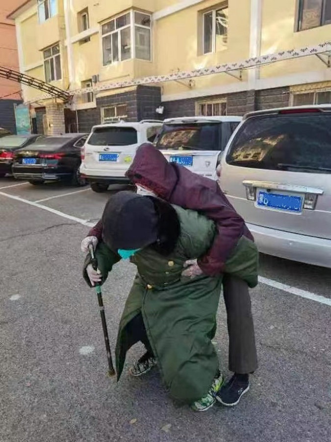 “還有一個老太太,剛做完手術(shù)時間不長,走路很慢,我就過去背上老人家去采集核酸?!睆垈フf,“不光張書府老人,我現(xiàn)在照顧著好幾個老人,都給他們留了電話,這些老人想吃什么菜了,會寫個單子聯(lián)系我,我會去給他們買回來。在這個小區(qū)里,有太多這樣的老人了,我們會盡自己所能,幫一個是一個?!?/p>