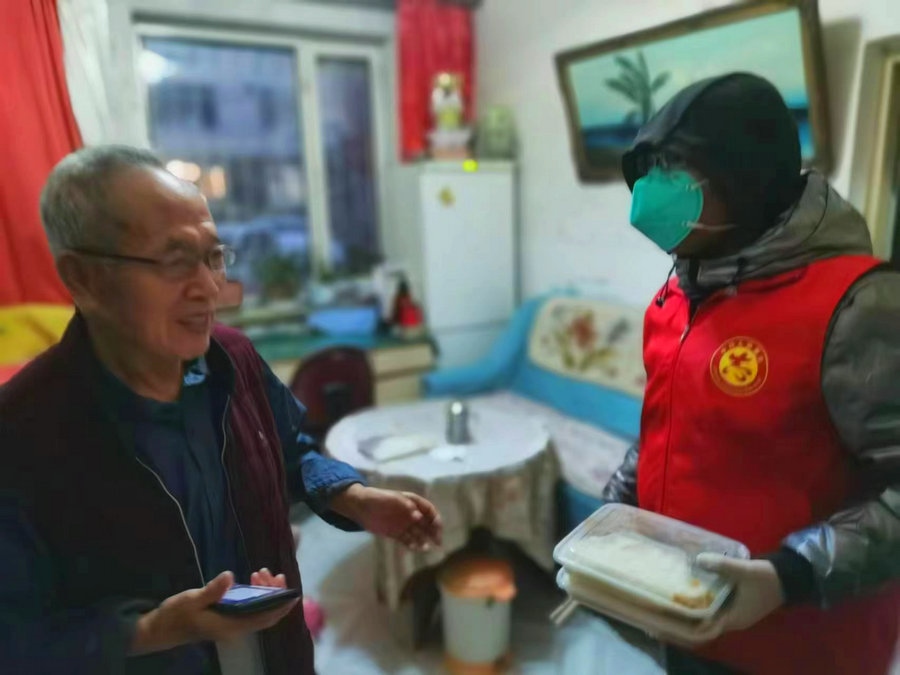 疫情發(fā)生后,老人所在的小區(qū)出現(xiàn)陽性感染者,小區(qū)封閉后,吃飯成了問題,恰巧遇到了張偉。張偉了解到這個情況后,就主動承擔起為老人義務(wù)送飯的任務(wù)。