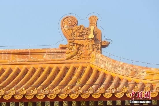 北京景山公園壽皇殿上的鴟吻。中新社記者 易海菲 攝