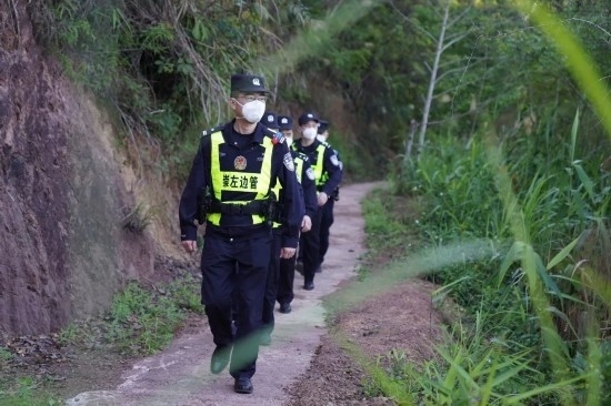 2004年,黃日從警校畢業(yè),懷揣著從警夢(mèng)、戍邊夢(mèng)來到了原廣西公安邊防總隊(duì)崇左邊防支隊(duì)?wèi){祥邊防派出所。當(dāng)?shù)谝淮坞S隊(duì)到邊境開展巡邏踏查時(shí),年輕的黃日眺望著與越南山水相連、蜿蜒起伏的崇山峻嶺,感慨祖國國門邊境的壯美,帶隊(duì)領(lǐng)導(dǎo)卻提醒他注意觀察隱藏在山間丘壑、縱橫交錯(cuò)的小路、小道,“這人跡罕至、看似平靜的山嶺下可能正隱藏著偷渡、販毒等跨境違法犯罪活動(dòng)?!?/p>