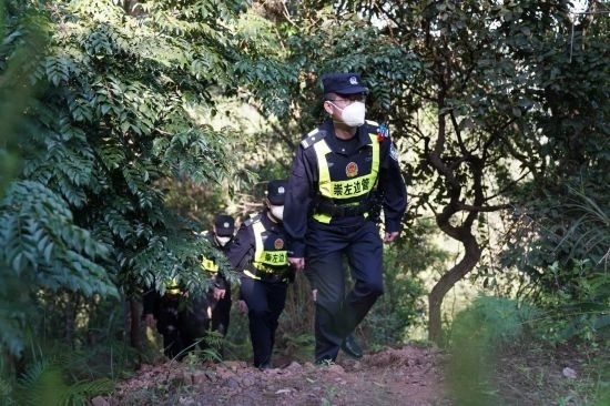 圖為黃日帶領(lǐng)隊(duì)員在中越1171號(hào)界碑附近巡邏踏查。