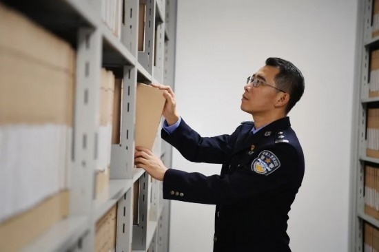 圖為黃日在辦案中心查閱案件卷宗。