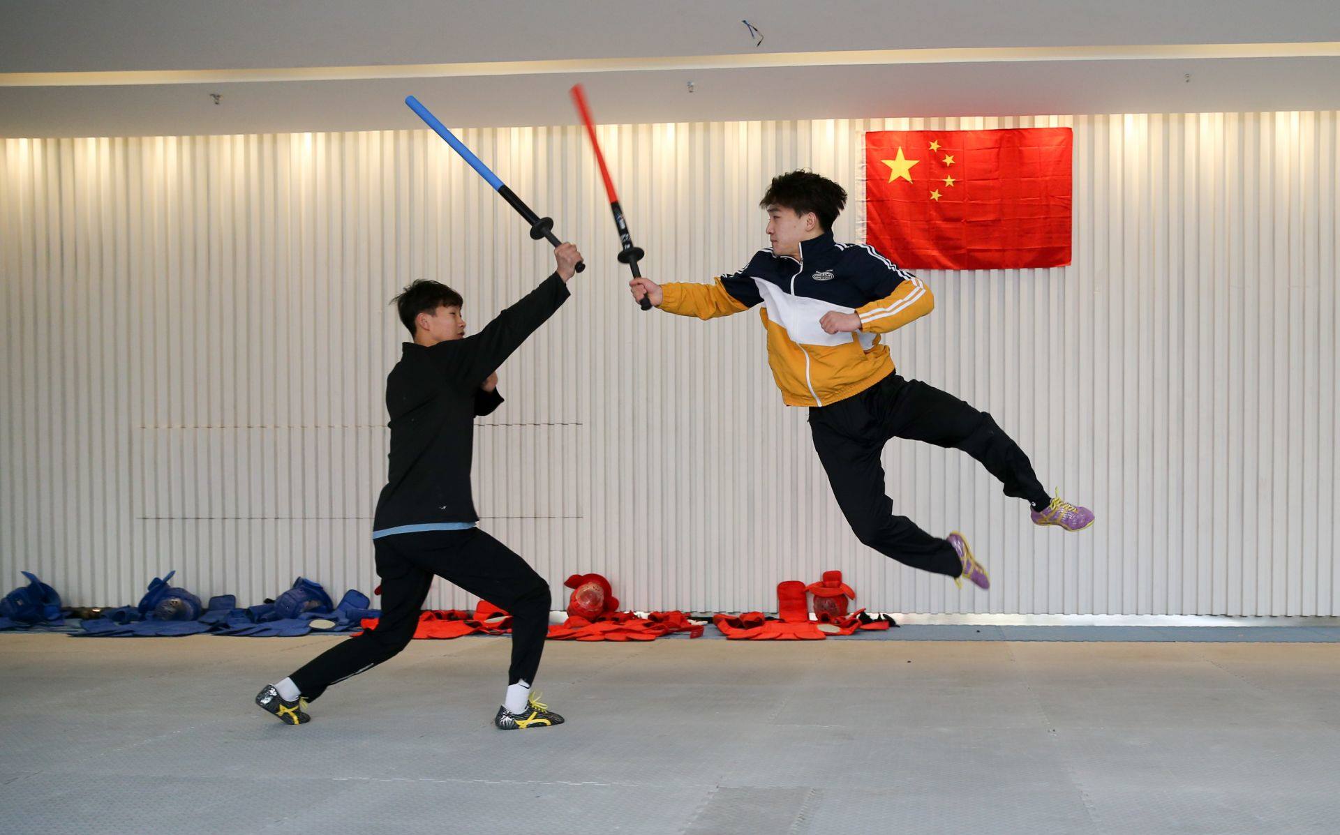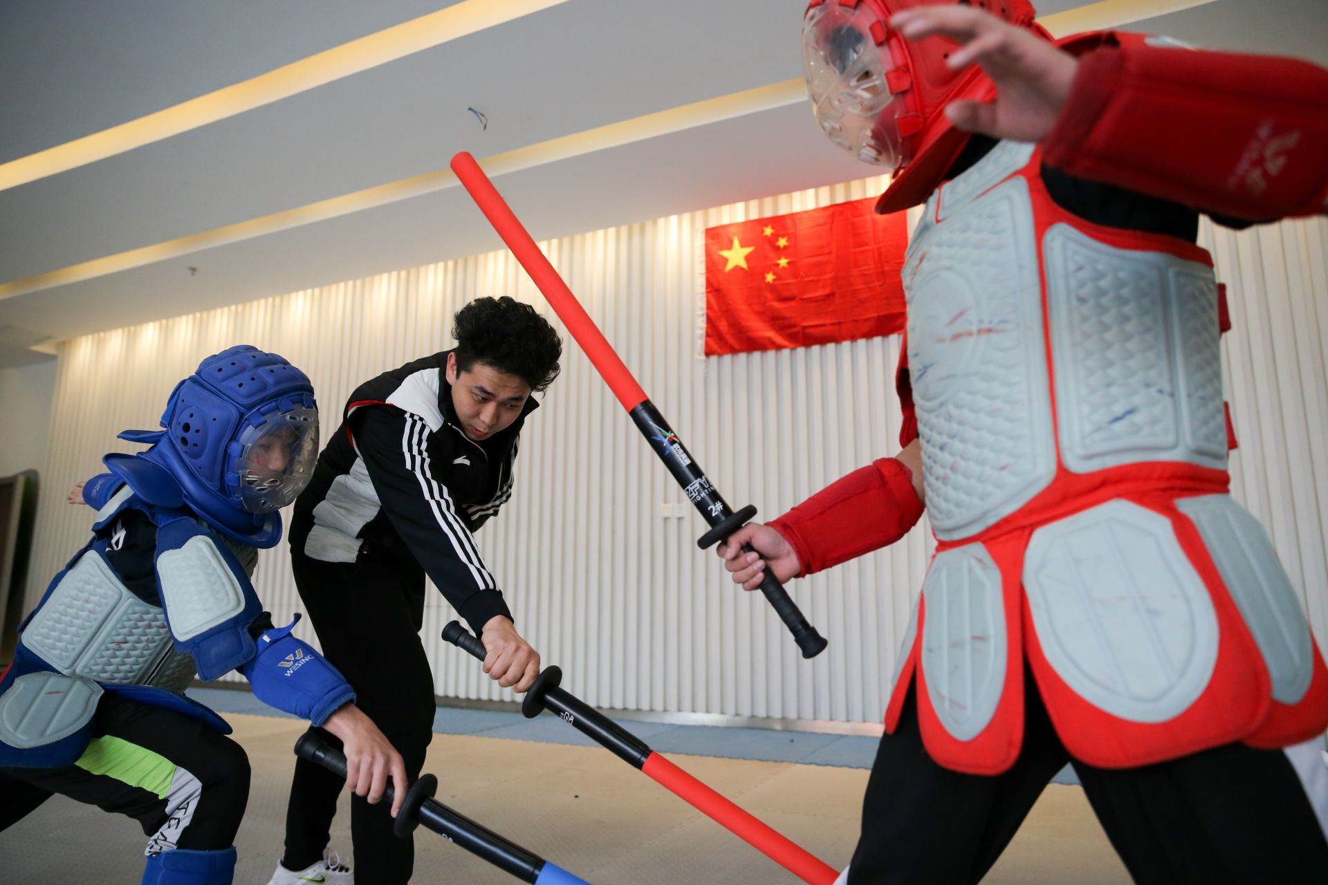 隊(duì)員手持一柄海綿包裹的短劍,時(shí)而閃躲騰挪,時(shí)而沖刺進(jìn)攻,動(dòng)作行云流水。一招一式間盡顯力量和速度之美,相互對(duì)抗擊打時(shí)發(fā)出“啪啪”的聲響更是令人熱血沸騰……如果說哪一項(xiàng)運(yùn)動(dòng)能夠滿足人們對(duì)俠客的終極幻想,非武術(shù)兵道莫屬。3月21日,為備戰(zhàn)全國武術(shù)兵道錦標(biāo)賽,內(nèi)蒙古唯一一支武術(shù)兵道隊(duì)在呼和浩特市體育運(yùn)動(dòng)學(xué)校展開訓(xùn)練。