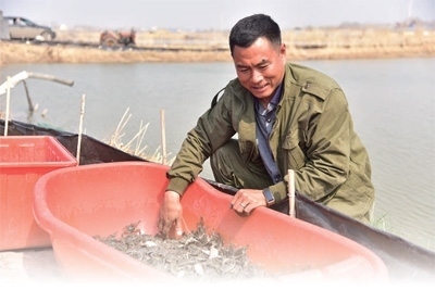 吉林省前郭爾羅斯蒙古族自治縣高級農(nóng)技師劉雙在補(bǔ)充蟹苗。王國彬攝