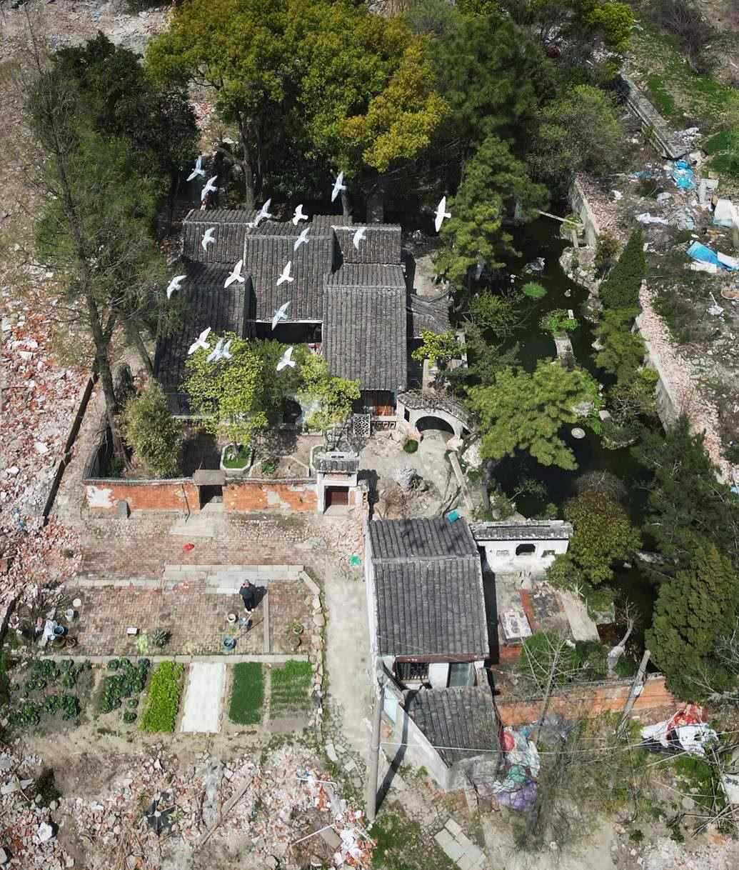 歲月斑駁。2018年起,影園附近地塊拆遷進入加速期,東側(cè)的農(nóng)貿(mào)市場、南北兩側(cè)的居民區(qū)、西側(cè)的陸幕小學(xué)陸續(xù)拆除。周圍的原始環(huán)境陸續(xù)解構(gòu),影園中的人也很難在“孤島”中生活下去。隨著周邊拆遷的結(jié)束,以往的排水系統(tǒng)也不能正常使用,一到下雨天,周圍的水直接倒灌進影園的宅子里,彭家人只能靠水泵排水。