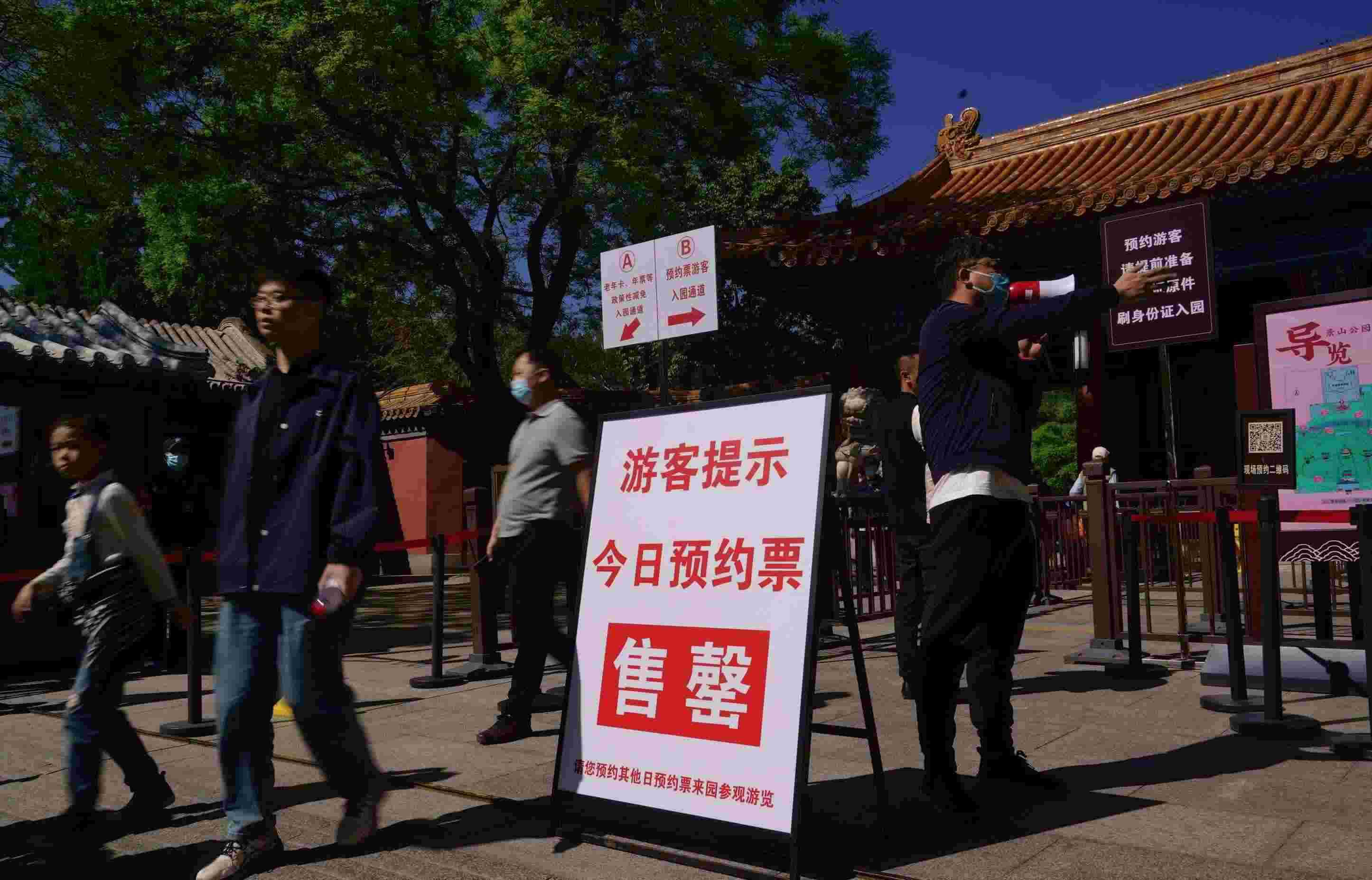 “請大家提前準(zhǔn)備好身份證,老年卡、年卡游客走這邊?!苯裨?時,在景山公園東門,記者看到,公園細(xì)化了門區(qū)入園通道,開設(shè)了老年卡專道,分設(shè)了預(yù)約入園通道,在工作人員的引導(dǎo)和提醒下,游客分道、有序入園。