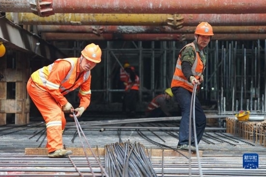 5月3日,在長(zhǎng)沙西站建設(shè)工地,工人做混凝土澆筑前準(zhǔn)備。