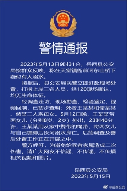【8點(diǎn)見】母女3人河中溺亡 安慶警方通報(bào)