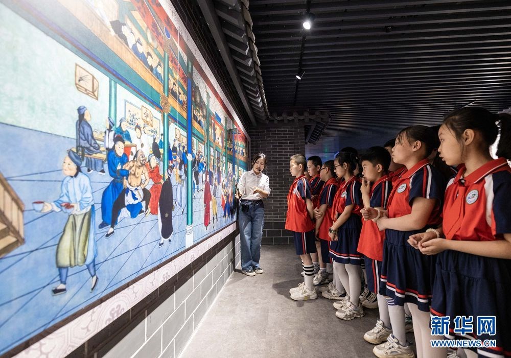 當(dāng)日,內(nèi)蒙古自治區(qū)呼和浩特市玉泉區(qū)景區(qū)服務(wù)中心聯(lián)合玉泉區(qū)南茶坊小學(xué)推出“浸潤本土文化感受家鄉(xiāng)之美”主題研學(xué)活動,小學(xué)生們走進(jìn)歸化城展示館,通過參觀陳列文物和展品,學(xué)習(xí)了解家鄉(xiāng)的歷史文化知識,迎接國際博物館日的到來。新華網(wǎng)發(fā)(丁根厚攝)