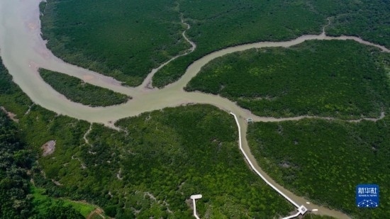 這是廣西山口紅樹林保護(hù)區(qū)一角(5月20日攝,無(wú)人機(jī)照片)。