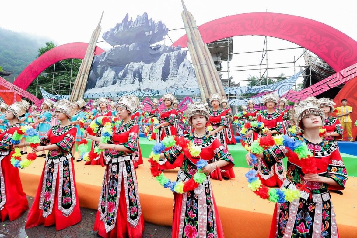 5月26日,2023第十二屆中國(guó)烏江苗族踩花山節(jié)在重慶彭水拉開序幕。上萬(wàn)名苗鄉(xiāng)兒女身著節(jié)日盛裝聚集在這里,共跳踩花山、齊唱“嬌阿依”,現(xiàn)場(chǎng)一片歡樂(lè)的歌舞海洋,場(chǎng)面壯觀。