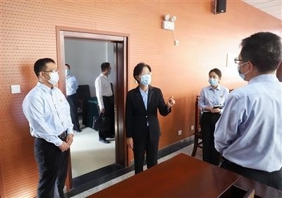 天津高院黨組書記、院長李靜(右三)到靜海區(qū)法院調研,實地查看靜海鎮(zhèn)人民法庭。