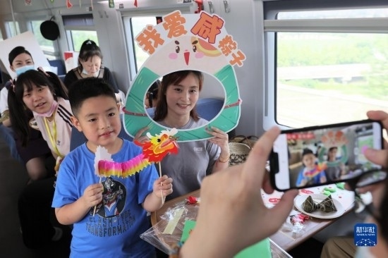 端午節(jié)前夕,鐵路上??瓦\(yùn)段在列車上邀請(qǐng)旅客參加端午民俗活動(dòng),迎接端午佳節(jié)。