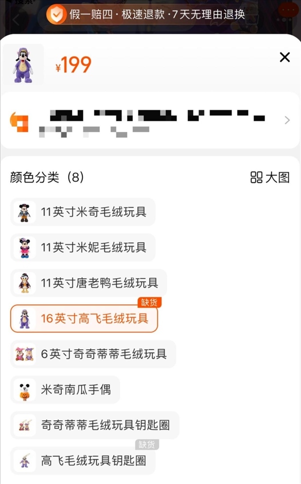 一位不愿意透露姓名的網(wǎng)友告訴紅星新聞,自己9月26日去上海迪士尼樂園,希望能購買“紫龍高飛”商品,然而大約中午就已斷貨?!肮ぷ魅藛T告訴我們,沒有貨了,不用排隊(duì)了。就是因?yàn)檫@樣,我后來才高價(jià)買了商品。”