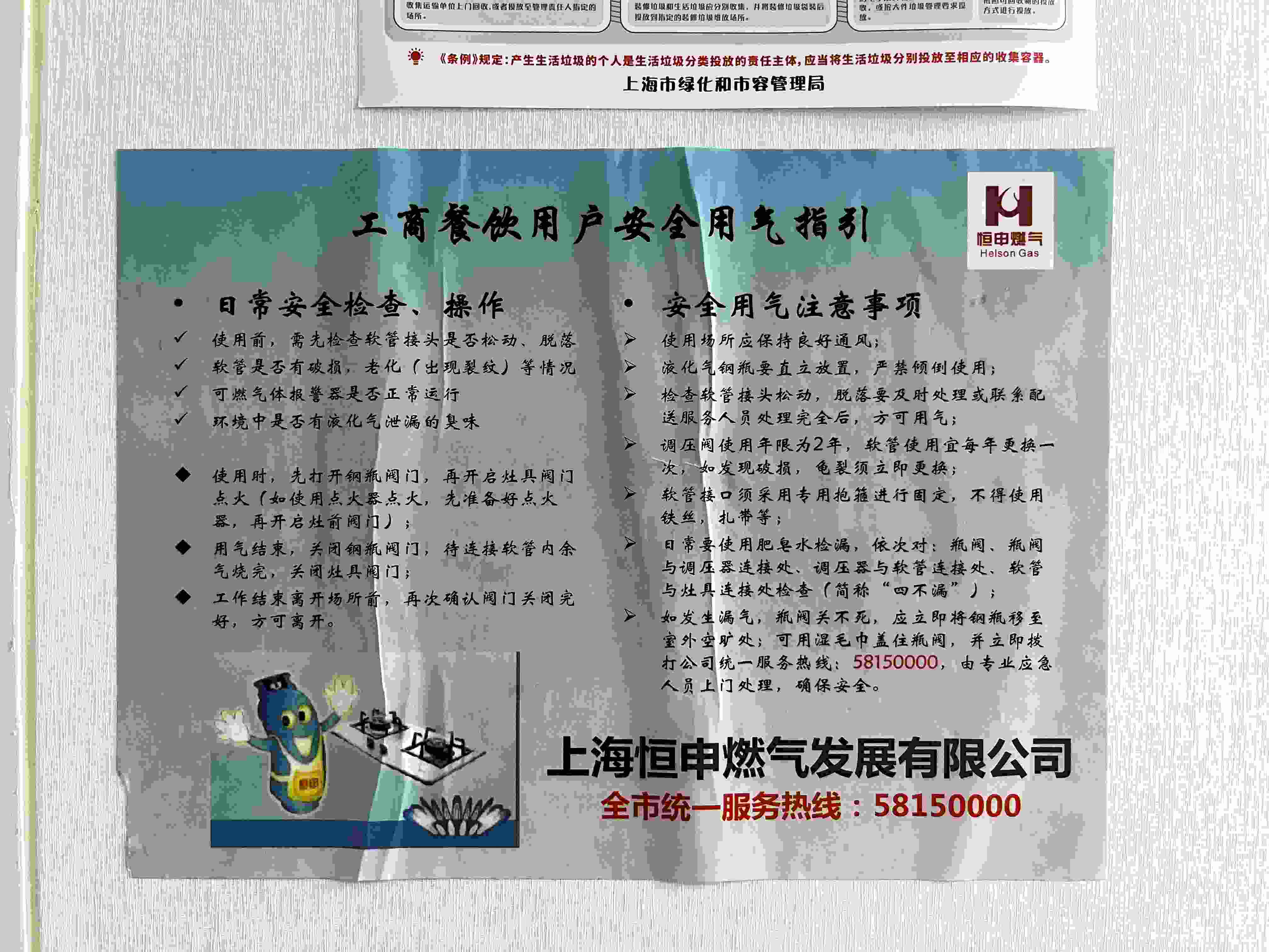 燃?xì)夤驹谏啼亙?nèi)張貼的安全用氣指引