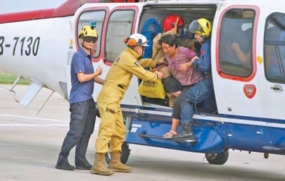 8月4日,黑龍江尚志市一面坡鎮(zhèn)萬山村,哈爾濱市森林消防支隊隊員正在解救被困村民。新華社發(fā)