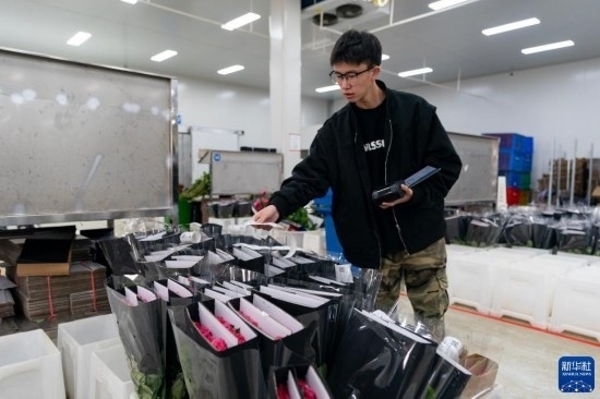每天,由花農(nóng)采摘的鮮花進入分揀包裝車間,預冷、分級、包裝、入庫冷藏等工作井然有序地開展。經(jīng)過采后處理的鮮花一部分通過園區(qū)自有物流直接向客戶發(fā)貨,一部分則由專門的鮮花運輸車運往昆明國際花卉拍賣交易中心,開啟拍賣流程。