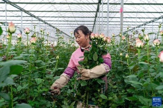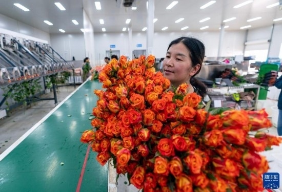 清晨,在云南省昆明市晉寧區(qū)云天化晉寧花卉產(chǎn)業(yè)現(xiàn)代化示范園內(nèi),品類各異的鮮花競相綻放,花農(nóng)們在現(xiàn)代化大棚里忙著采摘、搬運。云天化晉寧花卉產(chǎn)業(yè)現(xiàn)代化示范園是集育苗、智能溫室大棚、水肥一體化、無土綠色栽培、全程數(shù)字化管理系統(tǒng),以及鮮切花采后處理、預冷儲藏等為一體的高標準設(shè)施農(nóng)業(yè)產(chǎn)業(yè)園區(qū),年產(chǎn)鮮切花1.6億枝。