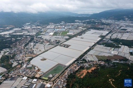 這是7月12日拍攝的云天化晉寧花卉產(chǎn)業(yè)現(xiàn)代化示范園(無人機照片)。新華社記者 陳欣波 攝