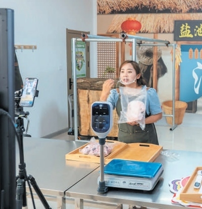 鹽池縣一家電商企業(yè)主播推介銷售灘羊肉。鹽池縣委宣傳部提供