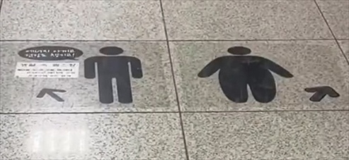 ·韓國地鐵扶梯標識歧視胖人?站臺路面上的人形貼紙惹大量爭議。