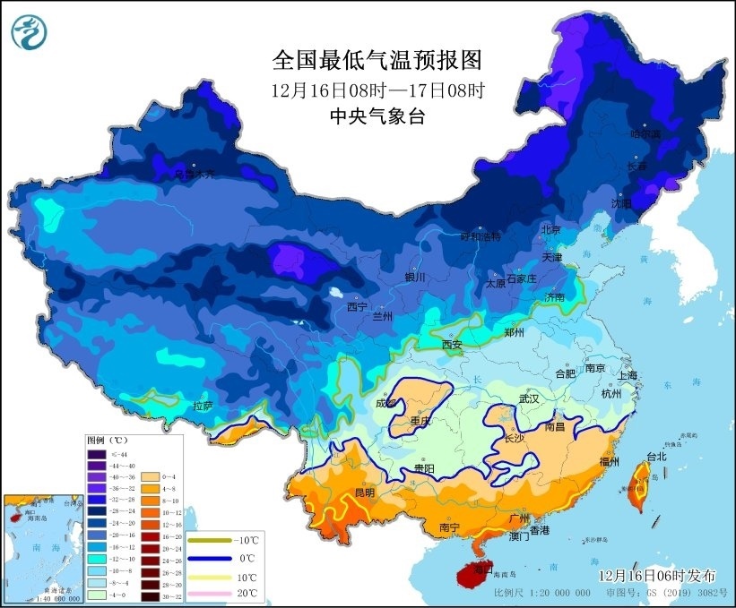 中央氣象臺12月16日06時發(fā)布寒潮藍色預警: