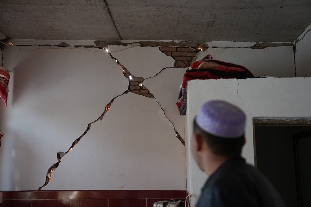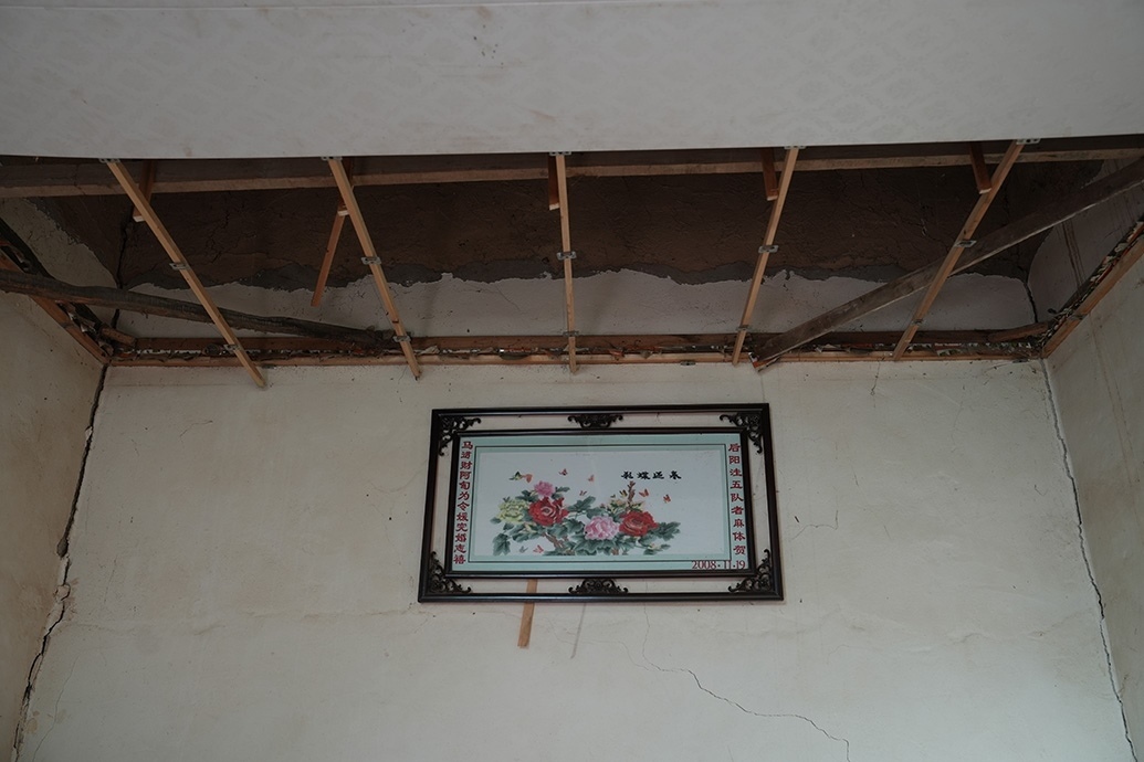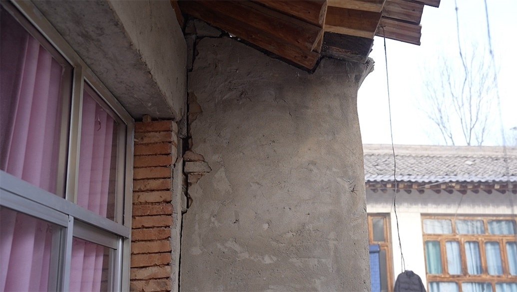 馬國忠的叔叔看著家里開裂的墻。