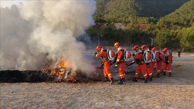 廣東機(jī)動隊伍在進(jìn)行滅火綜合演練