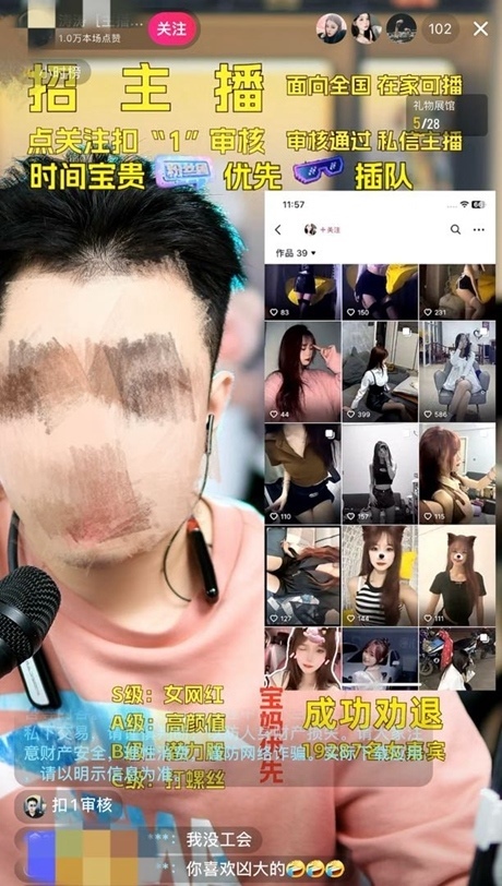 1月10日,一名男博主以“女網(wǎng)紅高顏值”為噱頭在某短視頻平臺(tái)直播間招募年輕女博主。
