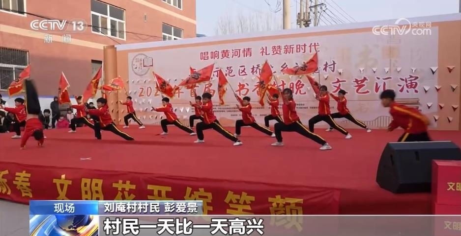 劉庵村村民 彭愛(ài)景:你看多紅火,多熱鬧,你看給俺村里文化生活也豐富起來(lái)了,村民一天比一天高興,一天比一天熱鬧、開(kāi)心、紅火。