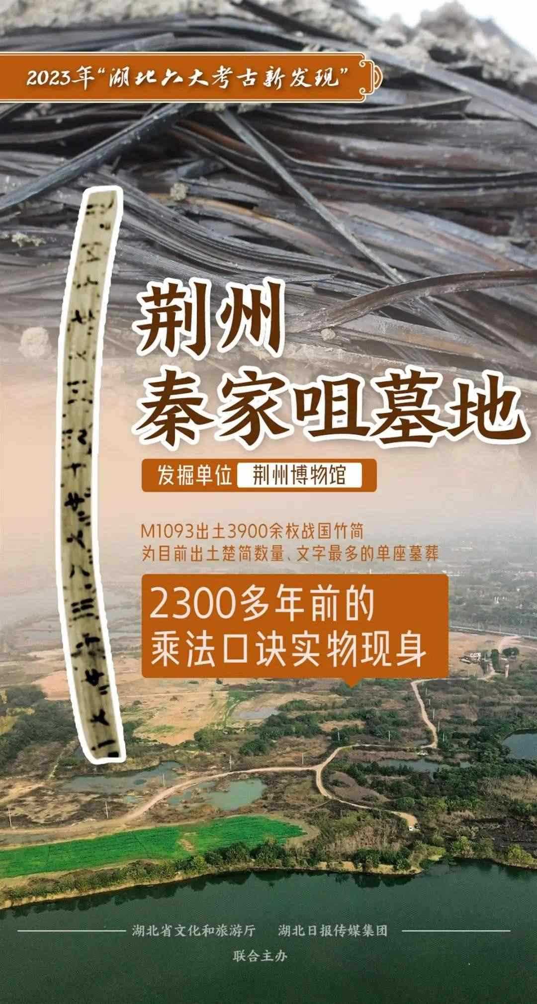 荊州市秦家咀墓地考古發(fā)掘大量東周楚墓,時(shí)代為戰(zhàn)國(guó)中期的M1093出土楚簡(jiǎn)揭取編號(hào)3910枚,字?jǐn)?shù)約30000字,是目前所知單座墓葬中出土楚簡(jiǎn)數(shù)量、文字最多者,是近年來(lái)湖北乃至全國(guó)簡(jiǎn)牘考古的重要發(fā)現(xiàn)。