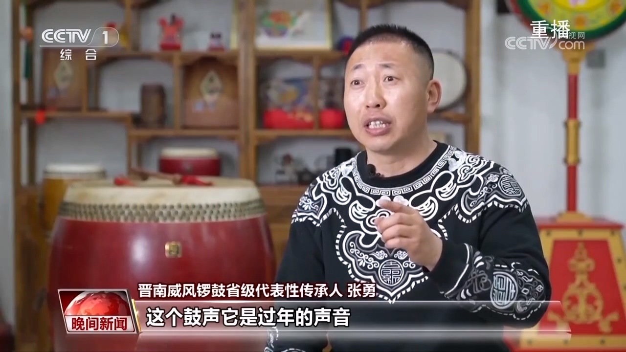 張勇:沒(méi)有鼓聲的幾年,我感覺(jué)對(duì)過(guò)年都沒(méi)有什么印象了,我小時(shí)候大概到了臘月二十的時(shí)候,坐在院子里頭聽(tīng)到鼓聲,四面八方都能傳來(lái)鑼鼓的聲音。