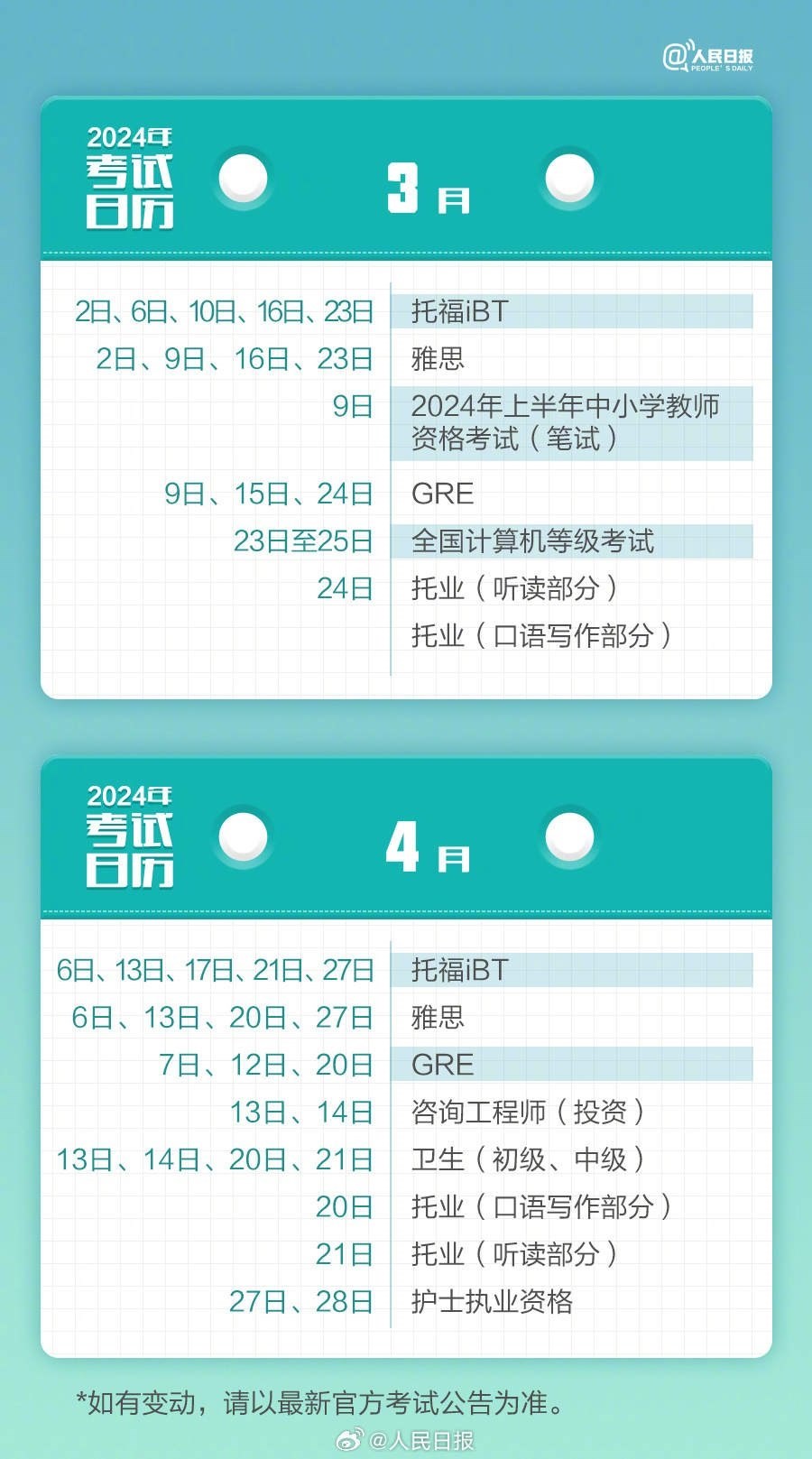 轉(zhuǎn)需!2024全年考試時(shí)間表
