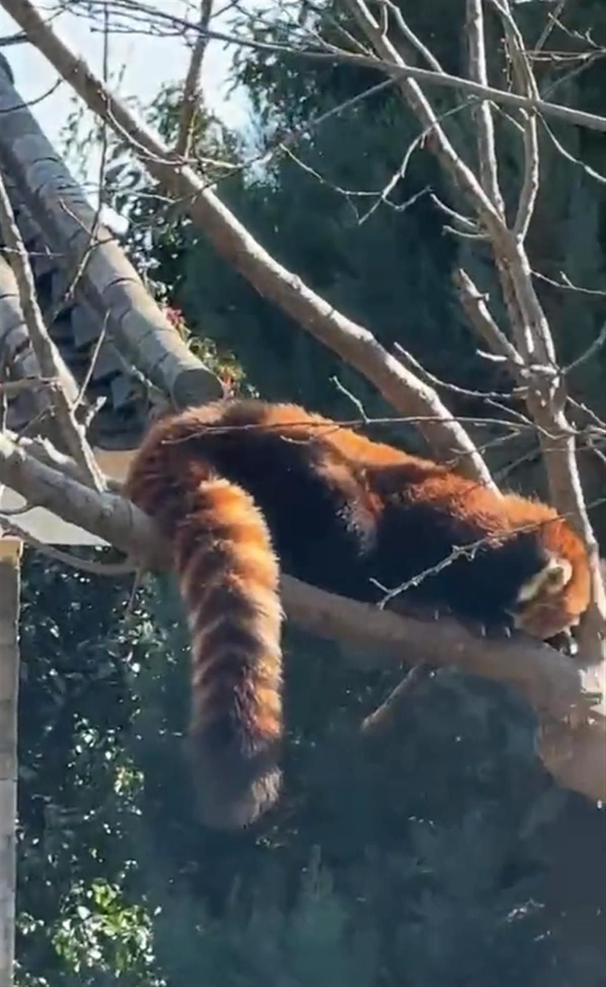 1月25日上午,極目新聞?dòng)浾呗?lián)系上視頻發(fā)布者,對(duì)方解釋稱,其實(shí)動(dòng)物園有兩只小熊貓,它們都藏在樹上了,自己第一眼沒看到,有些驚訝。其中一只小熊貓?jiān)谝曨l的最后三秒也出現(xiàn)了。