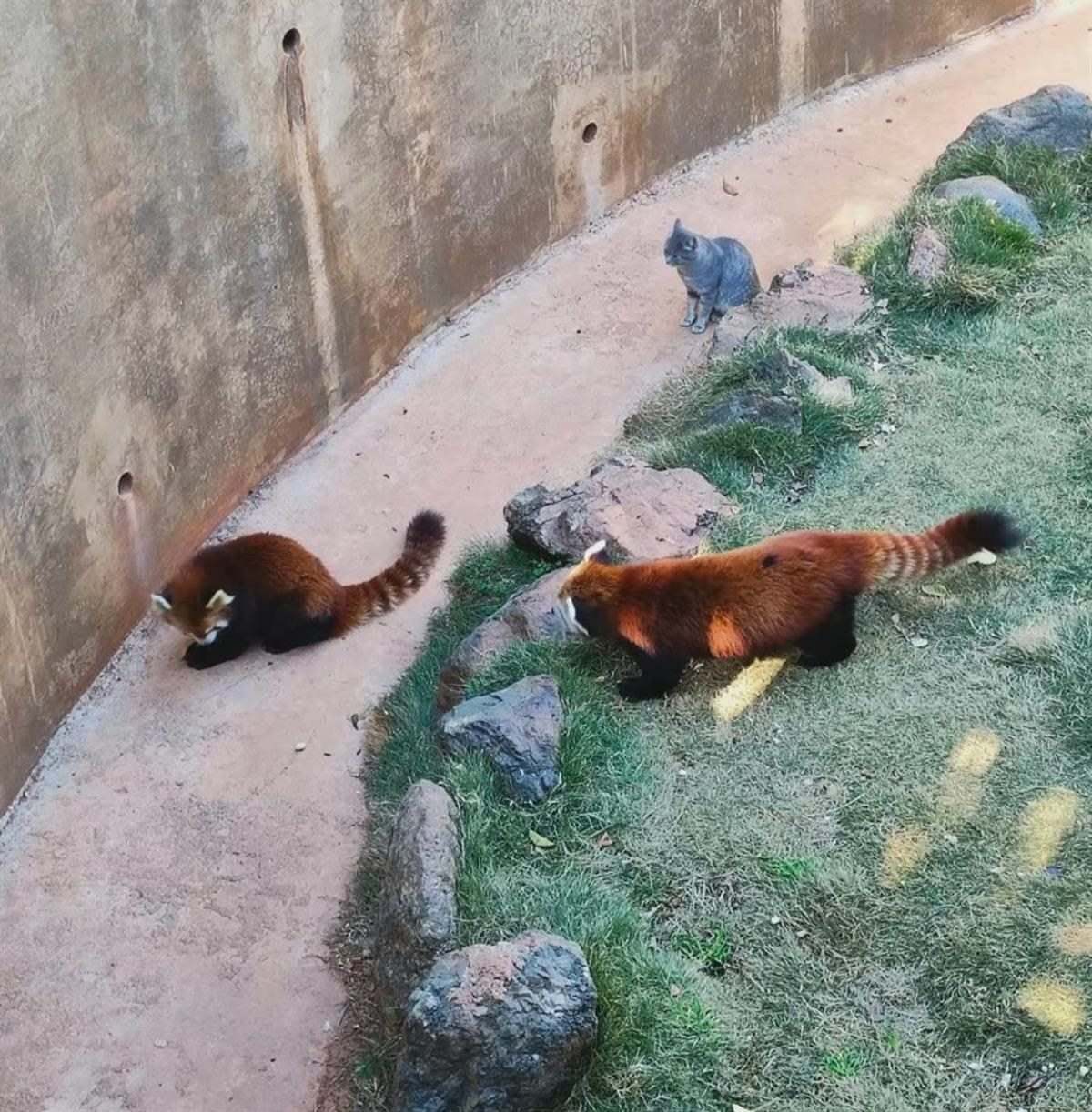 對(duì)此,有網(wǎng)友調(diào)侃稱,“莫非小貓咪替小熊貓?jiān)陧攳??”“這不是貍貓換太子嗎?”不過,也有很多網(wǎng)友表示,這里是大理洱海公園的動(dòng)物園區(qū),小熊貓園內(nèi)養(yǎng)了兩只小熊貓,它們和這只貓咪和諧相處很久了,只是小熊貓經(jīng)常爬到樹上去玩,可能沒有貓咪那么顯眼。