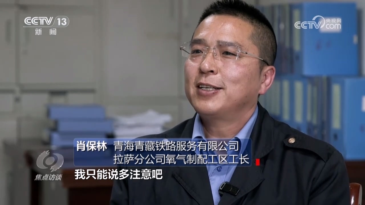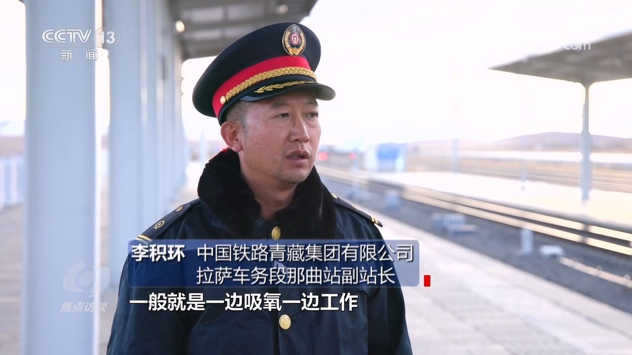 中國鐵路青藏集團(tuán)公司拉薩車務(wù)段那曲站副站長李積環(huán):“到海拔高的地方來了以后,他們經(jīng)常有暈倒的,我們要給他們提供氧氣。我們鐵路職工的話,一般就是一邊吸氧一邊工作,逐漸吸氧就成了我們堅(jiān)實(shí)的依靠。”
