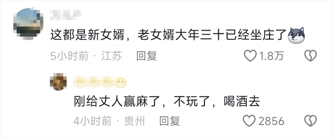 不過(guò),網(wǎng)友們指出,這些顯得格格不入的都是新女婿,老女婿大年三十已經(jīng)坐莊了,懂事的女婿還讓丈人贏錢(qián)了。