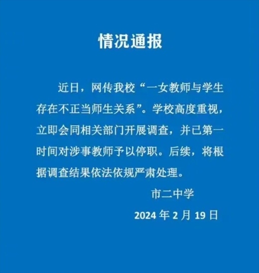 ·上海一高中女教師被舉報(bào)出軌16歲學(xué)生,校方通報(bào):涉事教師停職。