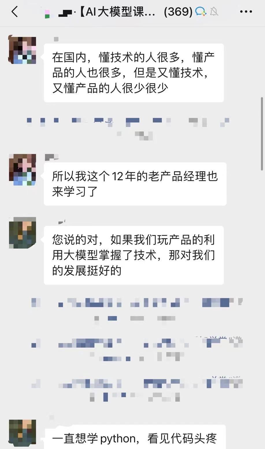 某AI大模型交流群內(nèi),有成員解釋自己學習相關課程的原因。