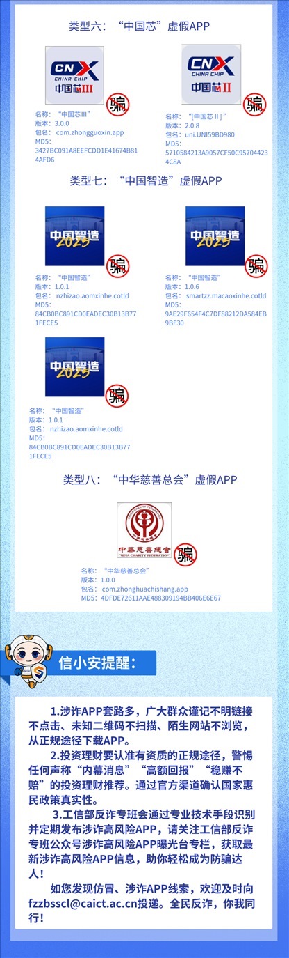 近期一些不法分子套用各類官方公開信息,打著“國家支持項目”“國家惠民政策”旗號,制作出一大批App,在其中編造虛假投資理財項目,以高收益為誘餌,忽悠不明真相的群眾在App“投資”進而實施詐騙。