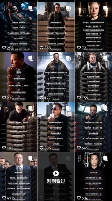 “滿屏皆是馬斯克”之外,在一些雞湯類賬號里,作家余華、知名投資人沃倫·巴菲特等也是“高產”創(chuàng)作者。