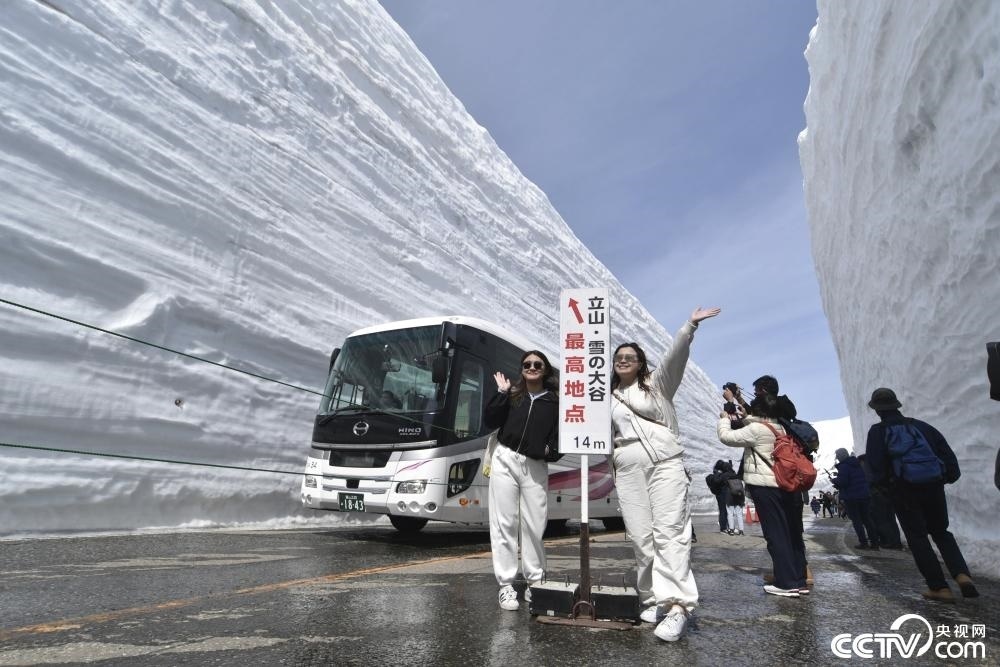 當(dāng)?shù)貢r間2024年4月15日,日本富山縣立山町,日本著名的“雪墻公路”對公眾開放,兩側(cè)積雪高達(dá)14米,吸引大批游客。