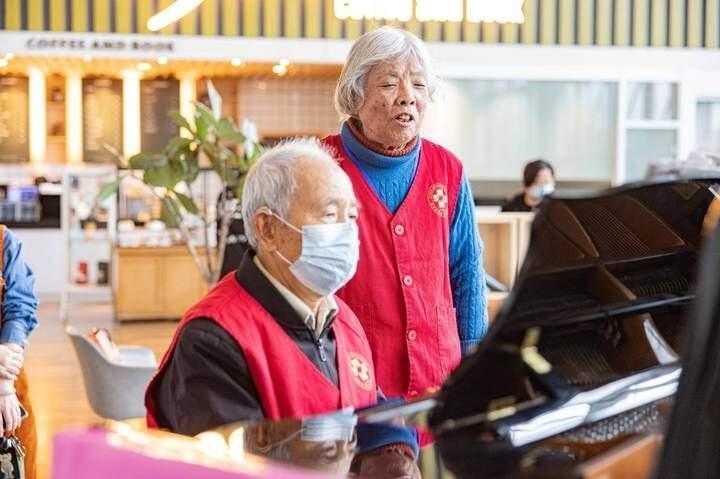 老人名叫葉明倫,是當(dāng)?shù)芈窐蛐W(xué)的退休教師,也是臺州恩澤醫(yī)院“音樂療吧”的鋼琴志愿者,今年已有85歲。每周一上午,他都會乘坐公交車,從5公里外的家中趕到醫(yī)院,為患者們義務(wù)彈鋼琴。