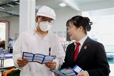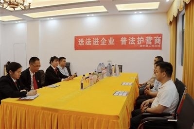 圖②:法官對食品廠工作人員現(xiàn)場普法。