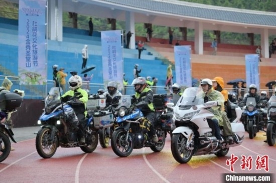 隨后,“5·17”騎行季活動(dòng)將現(xiàn)場(chǎng)氣氛推向高潮。伴隨著發(fā)車(chē)儀式的號(hào)令,800余輛機(jī)車(chē)轟鳴啟動(dòng),浩浩蕩蕩的車(chē)隊(duì)自縣城體育場(chǎng)出發(fā)前往圣堂山。騎行者們?cè)谇嗌骄G水間享受著騎行運(yùn)動(dòng)的樂(lè)趣,感受美麗的杜鵑花海。