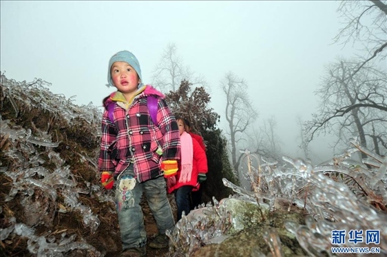 廣西桂林市全州縣蕉江瑤族鄉(xiāng)大源村位于桂北高寒山區(qū)。每年隆冬時節(jié),孩子們都要在老師和家長的護送下,在一片冰天雪地中踏上求學之路。