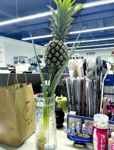 00后楊三日從事新媒體運營工作,她在工位上養(yǎng)了一個菠蘿,“養(yǎng)菠蘿是一件很酷的事情,不僅能觀賞,還能吃,很配我特立獨行的氣質(zhì)?!彼f自從養(yǎng)了菠蘿之后,每天上班時心情就變得非常好?!拔业墓の痪拖駸釒в炅忠粯樱崆斑M(jìn)入了春天。”