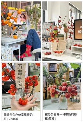 擺上香蕉,寓意“禁止蕉慮”;放上草莓,寓意“莓有煩惱”;南瓜在桌,寓意“萬事不南”;養(yǎng)上番茄,寓意“好運翻番”……